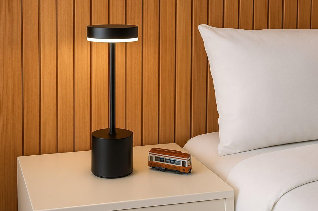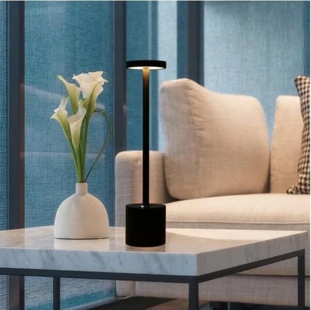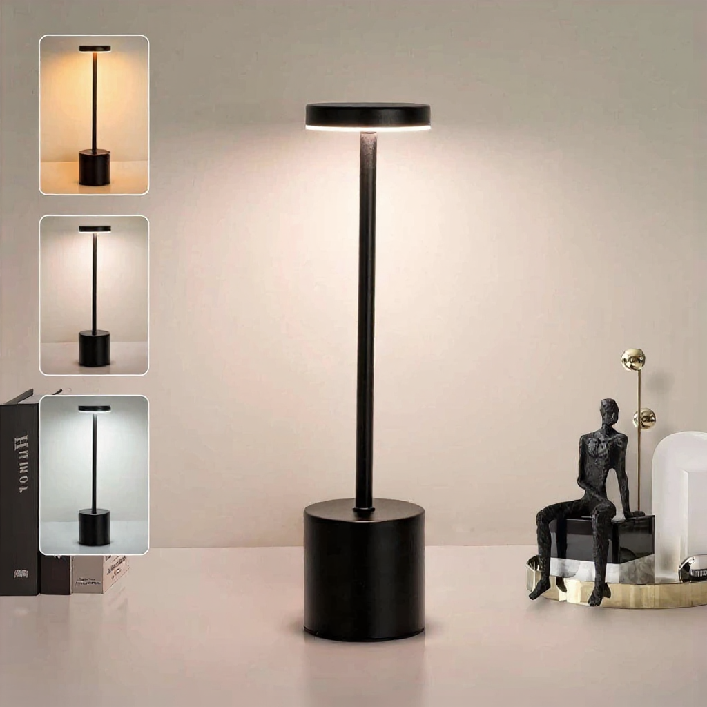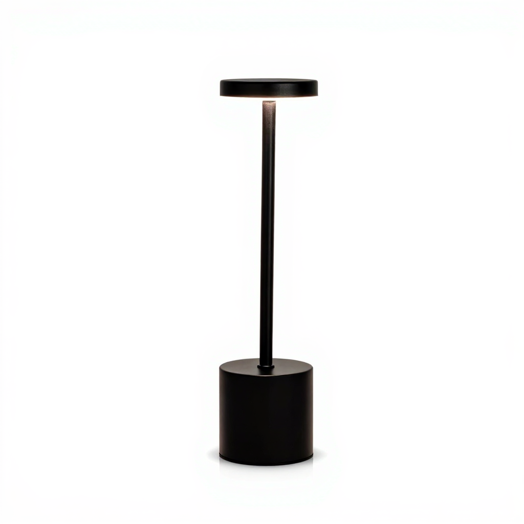 O design minimalista preto, branco ou dourado eleva qualquer ambiente, enquanto a bateria de 8 a 12 horas acompanha sua noite inteira sem depender de tomada. Toque no topo para ligar, toque de novo para alternar a cor da luz — Âmbar para jantares acolhedores, Neutro para foco e produtividade, Puro para leitura nítida — e toque para desligar.